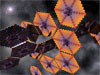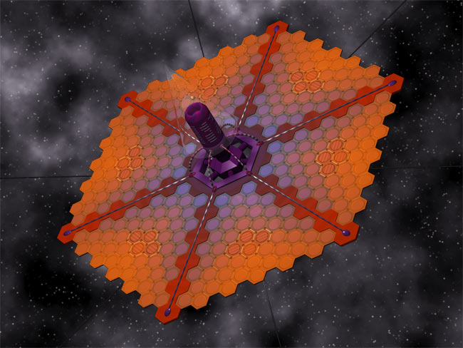 A hexagonal shape consisting of six solpan segments wedged around a snowflake frame that supports redimia, a crown, on one side and an enaelry silo on the other side. The redimia consists of 12 twinned petals and six extendable antennas. Two streams, each consisting of 15 oziquks, chase each other through petal ringlets. The enaelry is enclosed in a clear, conical, alseco-enabled case. The newclear apparatus, bettery and molecule storage are all housed in the purple enaelry silo. The dark side of the solpan is coated with bacteria-polished rybinatium and serves as a gamma ray sponge. The predominantly orange side functions as a regular light solpan.